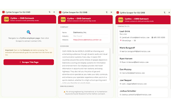 CyHire Scraper for ISU EWB is een gratis Chrome-extensie die speciaal is ontworpen voor het extraheren van HR-contactinformatie uit CyHire vacatureplaatsingen. Deze tool is ideaal voor leden van de ISU Engineers Without Borders, die gebruik willen maken van deze informatie voor hun outreach-initiatieven. De extensie biedt een eenvoudige interface waarmee gebruikers snel en efficiënt gegevens kunnen verzamelen zonder handmatig te hoeven zoeken.